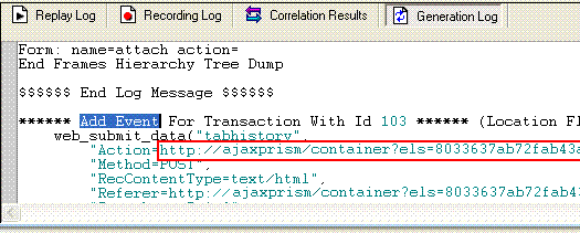 To find the request in whose response that dynamic value is coming. Press Ctrl+f, find keyword add event and note the below request URL or name because we have to put our web_reg_save_param() function right above that request.