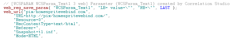 “Web_reg_save_param(“jsessionid1″,”LB=JSESSIONID=”,”RB=\””,”ORD=1″,”Search=Body”,LAST);